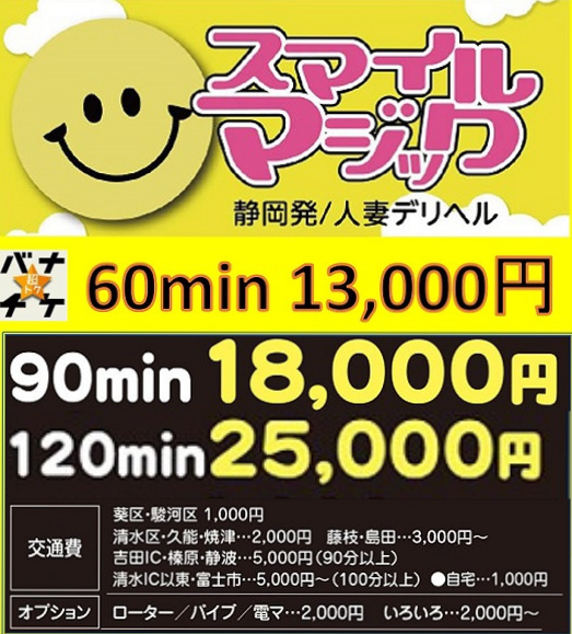 お手ごろ価格で利用できる『人妻デリヘル スマイルマジック』。エロい、そしてリアルな素人系の奥さんとプライベート気分で楽しめるのが魅力的なお店です。若い女性から熟女さんまで、経験豊富な女性と濃厚な時間を過ごしちゃってください!