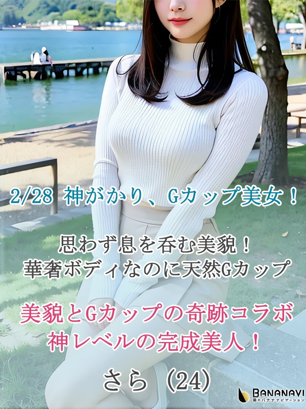 | お店から | 【きた!完全無欠の神美女!】 【完成度MAXの超美形!】 【奇跡の天然Gカップ美乳!】 【容姿もスタイルも最高!】 【思いやりある優しい性格!】 写真集から飛び出してきたかのような憧れの存在が貴方の目の前に!! 「こんな子が本当に存在するのか…?」 思わずそう呟いてしまうほどの衝撃です! まず目を奪われるのは、非の打ち所がない整った顔立ち。 誰が見ても『うお~綺麗だな~』と認めるであろう完成された美貌。 さらにモデル級の華奢でスラリとしたスレンダーボディ。 しかし、 その均整の取れたスタイルからは想像もできない、 規格外の天然Gカップ美乳という奇跡のギャップ! このアンバランスとも言える究極のバランスが、 彼女を唯一無二の存在へと押し上げています^^ そして忘れてはいけないのが、その性格。 おっとりとした優しい口調、ふんわりとした笑顔。 一緒にいるだけで心がほどけ、 時間がゆっくりと流れていくような感覚に包まれます。 彼女の魅力を言葉だけで語り尽くすのは不可能です。 ただ一つ、断言できること。 彼女と過ごす時間は、きっと忘れられない最高の思い出になる。 その特別さを、ぜひご自身で体感してください。 |