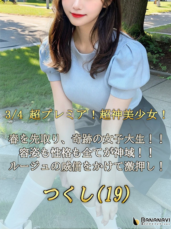 | お店から | 【春を先取り!奇跡の女子大生】 【業界激震レベル!神美少女!】 【容姿も性格も全てが神域!】 【アイドル超え、完璧なルックス】 【すらっと綺麗なモデル体型】 【自然体で愛される可愛さ】 もう正直に言います! この子、普通に芸能人レベル、いやそれ以上です^^ 写真だけでも十分可愛い。 でも実際に会ってみて、 実物はその何倍も破壊力がありました^^ 小顔に整いすぎている目鼻立ち。 パッチリとした瞳に、スッと通った鼻筋。 ナチュラルなのに完成度が高すぎる!! アイドル級のルックス。 透明感あふれる美白肌、 作り込んでいないのに完璧なバランス。 街中で見かけたら、二度見どころか三度見レベル。 スタイルも文句なし! やわらかなCカップに、きゅっと締まったウエスト。 すらっと伸びた脚が映えるモデル体型。 華奢なのに女性らしいラインがはっきり分かる絶妙ボディ! もはや容姿は完璧と言っても過言ではありません! でも店長が一番好印象だったのが 面接を始めてすぐ感じた彼女の内面の良さ! おっとりとした女の子らしい性格、 まるで柔らかな春の暖かい風が吹いてるようなこの空気感が最高です! 高嶺の花に見えて、 隣にいるとちゃんと“恋人感” 彼女と目が合って見つめ合った瞬間、 「惚れてまうやろ~」ってなります^^ 是非是非、実際にお会いして彼女の魅力を感じてください! この奇跡の大チャンスをどうかお見逃しなく! ※自宅派遣対応可能キャストになります。 |