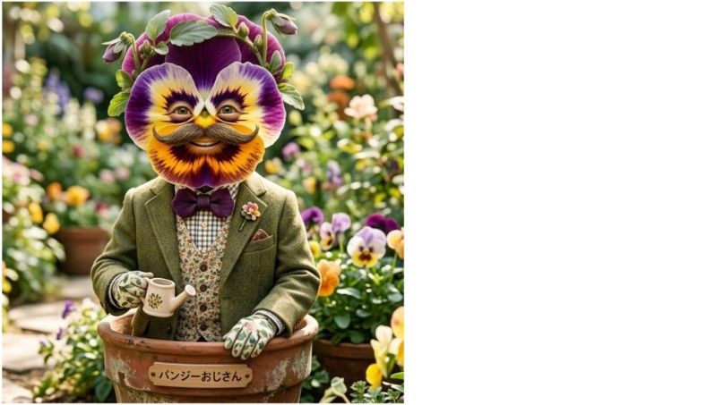 もう【パンジジィー】に改名だ〜!!!これも『点が三つあるだけで人の顔に見える』という【シミュラクラ現象】の1つらしいです!日本にパンジーが伝わった江戸時代末期には実際に【人面草(じんめんそう)】と呼ばれていたんだってー!へぇー!この日記を読んだあなたにもパンジーがおじさんの顔に見えるという【パンジジィーの呪い】を付与!✧*。笑
