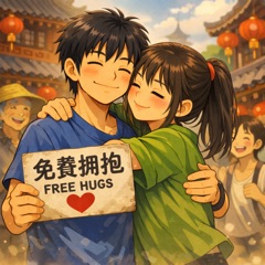 フリーハグをする日本人男性がいて