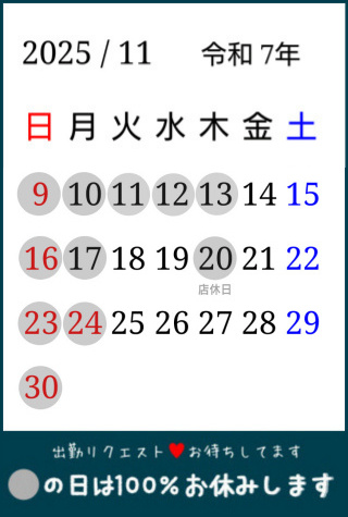 ただいま月①のお休み中です