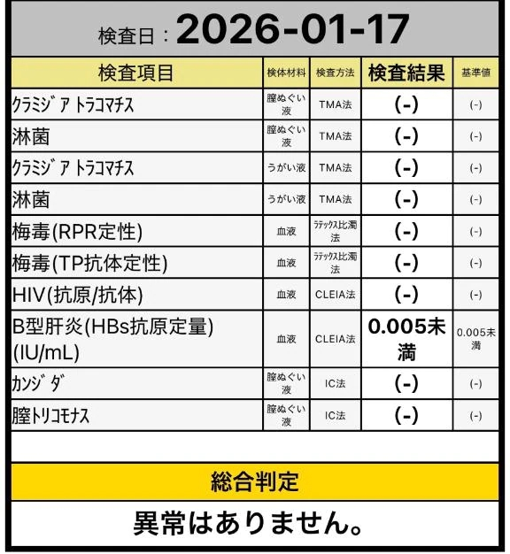毎月検査をしてますが、血液も含めた検査をしたターンだったので安心チェック結果も添えておきます
