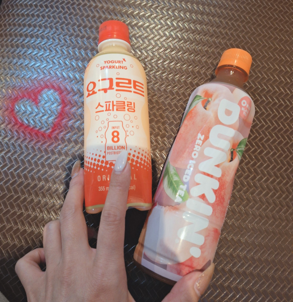左側は炭酸そんなに飲まない私が時々飲みたくなるメチャクチャ弱い炭酸のヤクルトみたいなお味っ♡