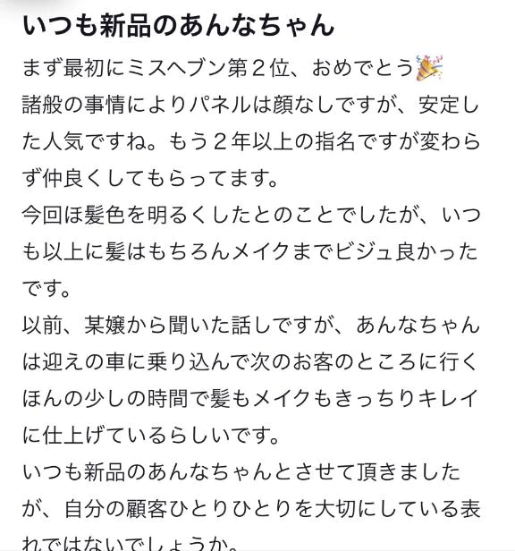 ミス___の為に初めて口コミ書いたのって