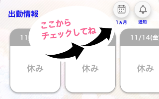 今月のシフトが見れるのでお願いします💕