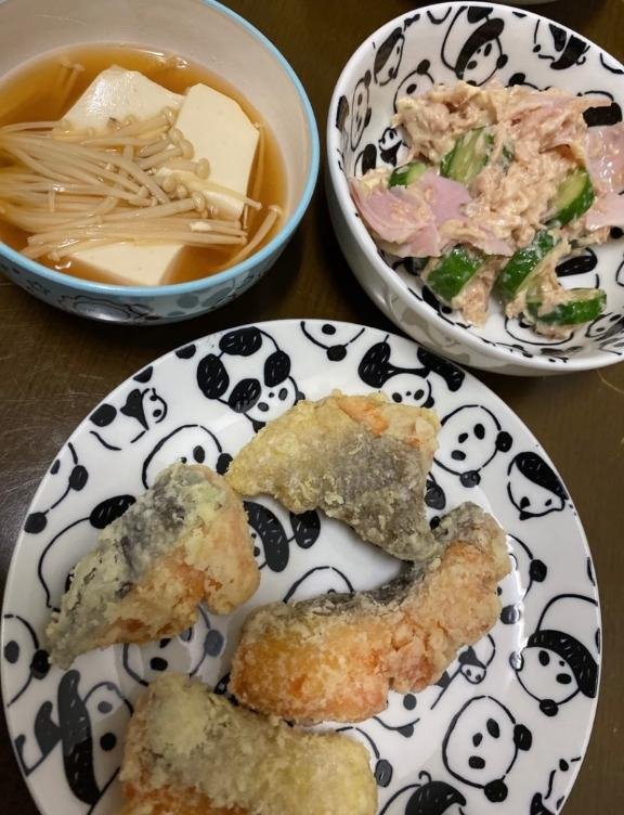 鮭を塩少々つけて片栗粉で揚げるととても美味しくてハマってます