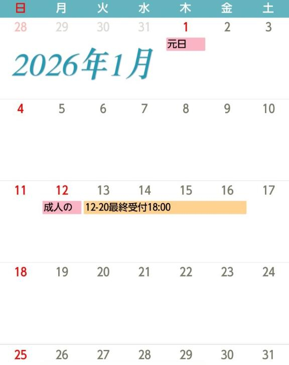 年始の初出勤は 1/13(火)