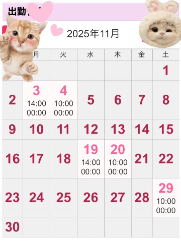来月の出勤予定です🌼✨