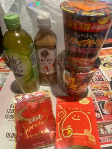 差し入れのカップ麺にあーるわんおみず