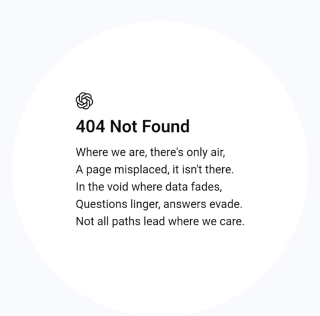 エア・ゼア、フェイズ・イヴェイド、ケア。各行の最後の単語はちゃんと韻がふまれております(多分)「このページは存在しません」の404シリーズの中で、ダントツでセンスがあると感じたコピーです。「ここにあるのはただの空気思い出はどこかで迷子になったまま記憶が霞む虚無の中問いだけが彷徨い、応えは逃げる全ての道が、望んだ場所に続くわけではない」すみれ -