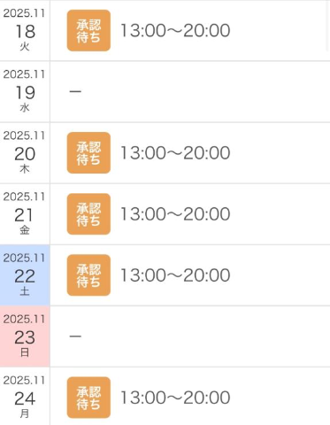 今回こちらの出勤日程になります