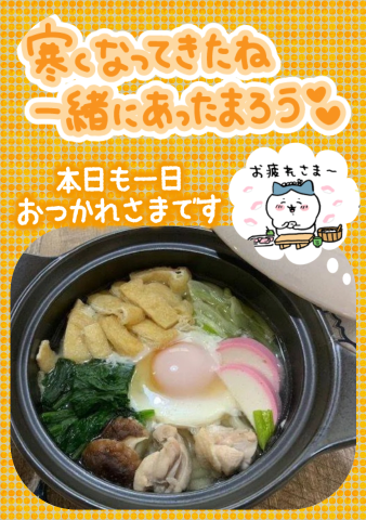 寒いので晩御飯まだの方及びお夜食に…