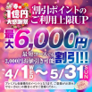 ◎300分→上限UP6,000ポイント使用可能!