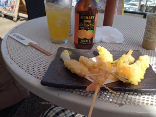 お客さま方から教えてもらった飲食店は定休日で、ここで海を見ながら、静岡産みかんを使ったサワーを飲んで休憩