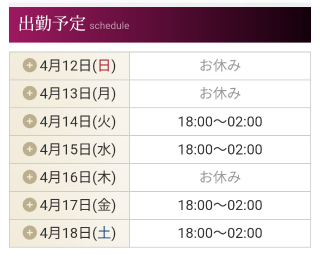 出勤予定はこのimg日間img