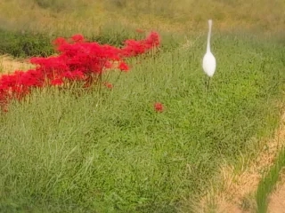 サギと彼岸花なんどけど、遠かった