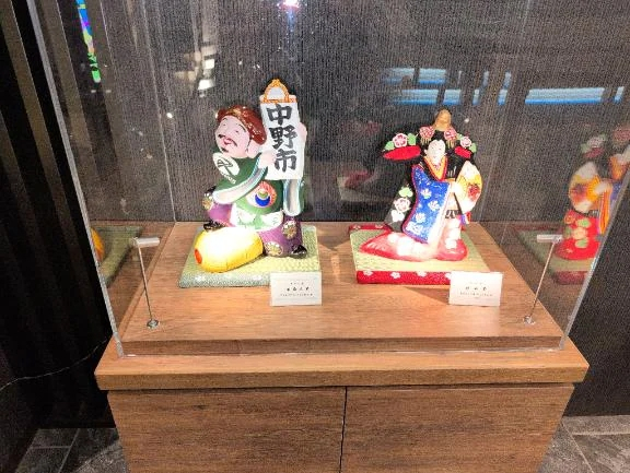 男湯と女湯の仕切りを一部小さな社殿?にし、