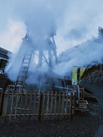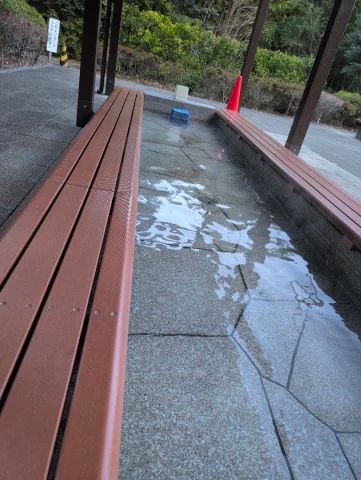 ふきあげるまで、足湯で待ちました。