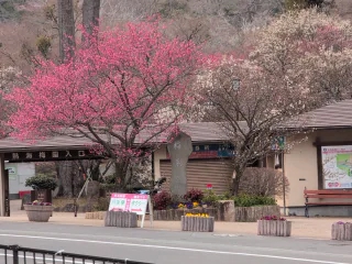 梅の花を見るのとと足湯でホテル到着が遅くなってしまった途中で、富士山見たけど、
