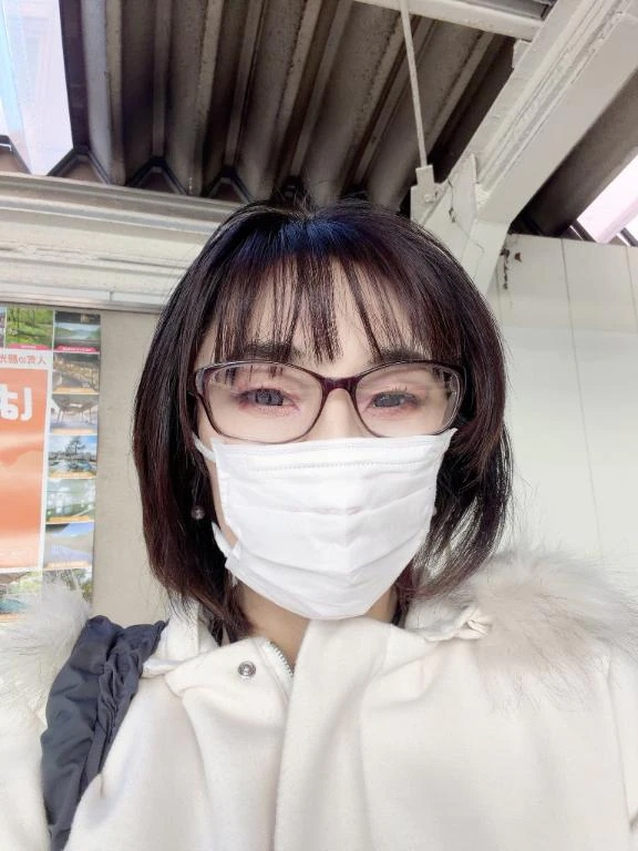 花粉対策メガネに、マスクおはようございますこれから出発です。今、駅のホームだよ花粉対策用のゴーグルに
