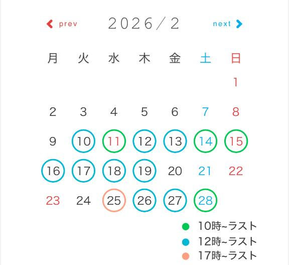 2月出勤予定✍🏻