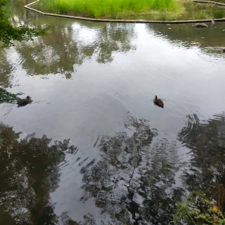 鴨も群を無し遊泳庭園木造橋自然を活かした造り