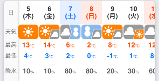 日曜日の最高が2℃に…😱