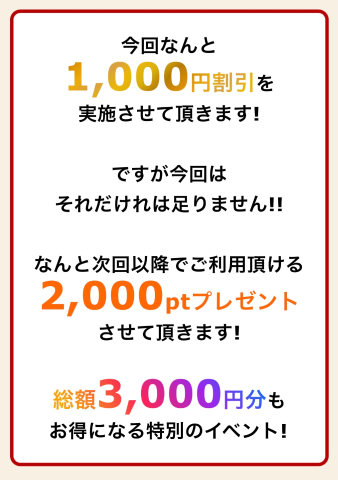 3,000円引き 3回目のご利用でなんと!
