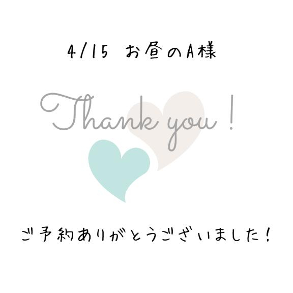 【ご予約御礼】4/15 お昼のA様