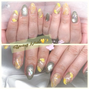 春っぽくミモザカラーに💛💚ふんわりした色味で、ちょっと大人っぽい感じに…