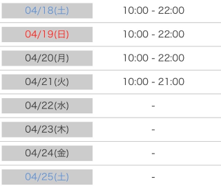 本日も10時から22時まで