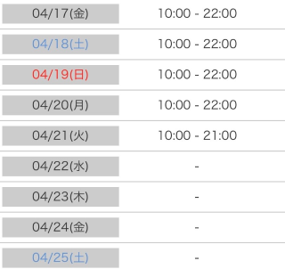 本日は22時まで