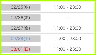 ●2/11(水) 11時〜24時 ??