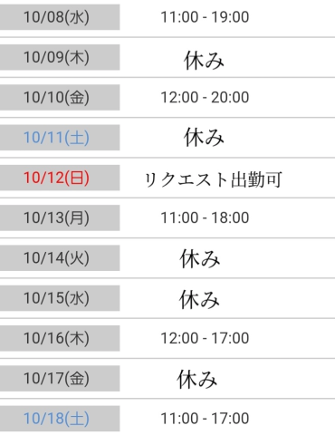 明日12時〜出勤