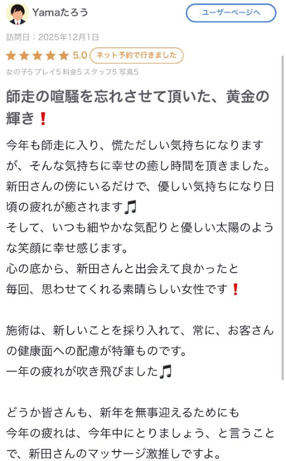 【お礼写メ日記】yamaたろうさん師走の忙しさの中でも、いつも温かく見守ってくださって本当にありがとうございます。