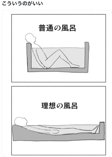 ・・・ありそうでないお風呂ですよね🛁✨すごーくゆったりまったり浸かれて日々の疲れが癒やされそう🥰❤️ありそうで なかなかない 理想の事柄って、割とありますね🤭✨✨お兄様と一緒に入るときは・・・