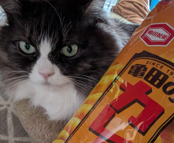 お煎餅をボリボリ