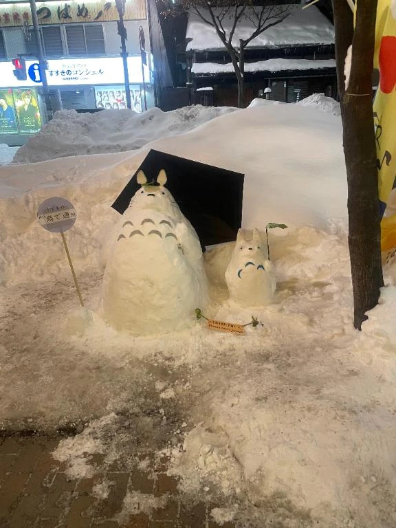 なんと!雪で作られたトトロの親子