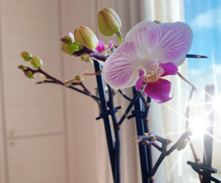 2年前に道の駅で買ってきた胡蝶蘭、リビングで今年も開花しました