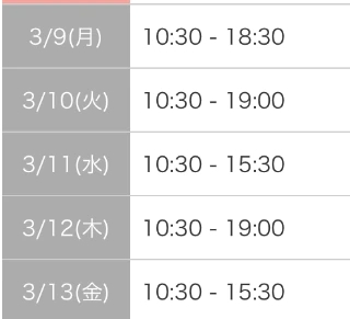 9日10時半〜16時半です