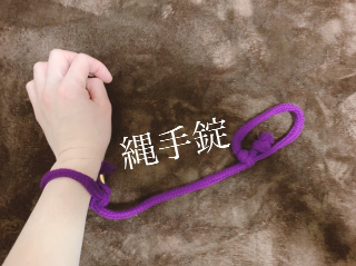 後ろ手の手枷にも出来ますが、だいたい前に着けます。