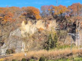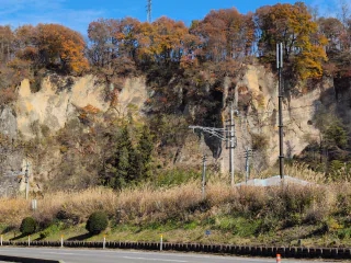 嬬恋を車で走って行くと断崖絶壁が右手に続いている場所が、